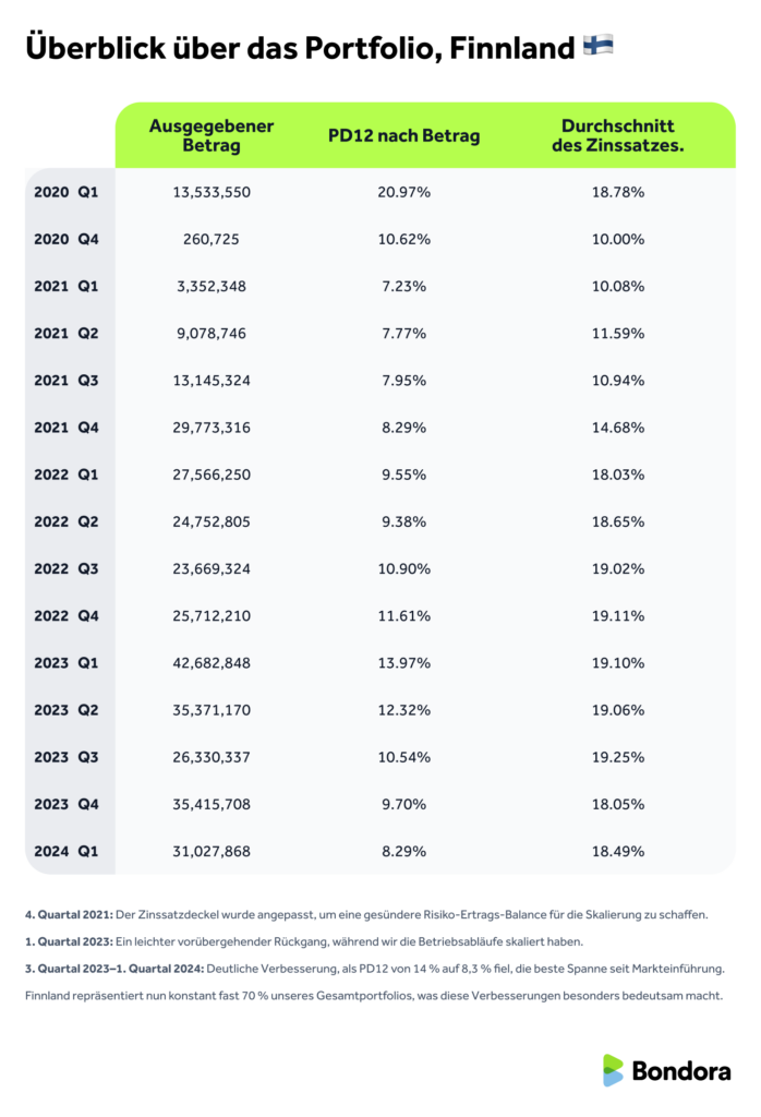 Die Konsolidierung von Go & Grow, unserem wichtigsten Produkt, und die einzigartigen Herausforderungen der COVID-Jahre haben unseren aktuellen Portfolioansatz geformt. Obwohl wir mit Hindernissen wie der restriktiven Zinsobergrenze in Finnland konfrontiert waren, haben wir unsere Kreditvergabemodelle verbessert und unsere Portfoliostrategie optimiert.