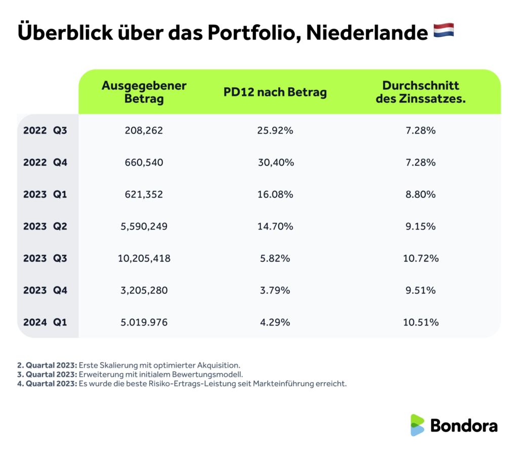Ein sehr gutes Beispiel für unsere Anpassungsfähigkeit sind die Niederlande. Auf diesem Markt haben wir innerhalb weniger Quartale erstklassige Risikokennzahlen erreicht. Mehr dazu weiter unten.