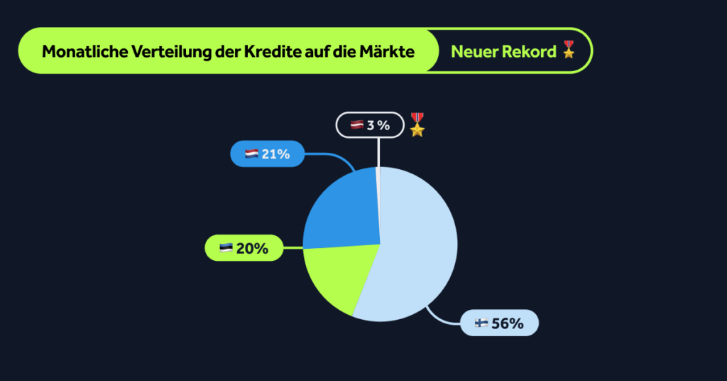 Trotz des leichten Rückgangs der Zahlen in diesem Monat ist Finnland weiterhin der Markt mit dem größten Anteil an neu vergebenen Krediten (56,3 %).
