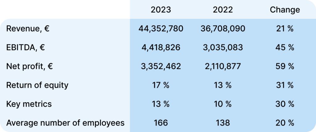 To support this growth, we increased our team by 28 people in 2023, bringing our total employee count to an average of 166. Despite these additional expenses, we ended the year with a net profit of €34 million.