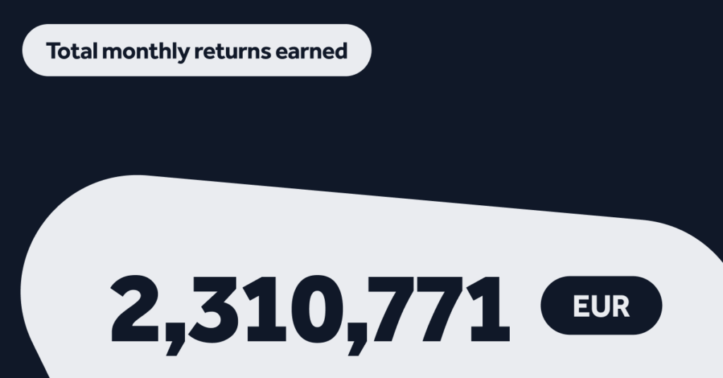 NEW: You can see the returns earned by our investor community starting this month. Although investing is a long-term journey, it’s gratifying to celebrate the gains along the way to your goals. In May, the Bondora Group investor community earned a total of €2,310,771 in returns on their investments.