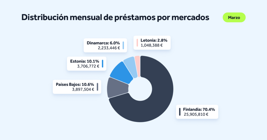 • 🇫🇮 Finlandia: Se mantuvo como el principal mercado con 25.905.810 € en originaciones, representando el 70,4 % del volumen total.