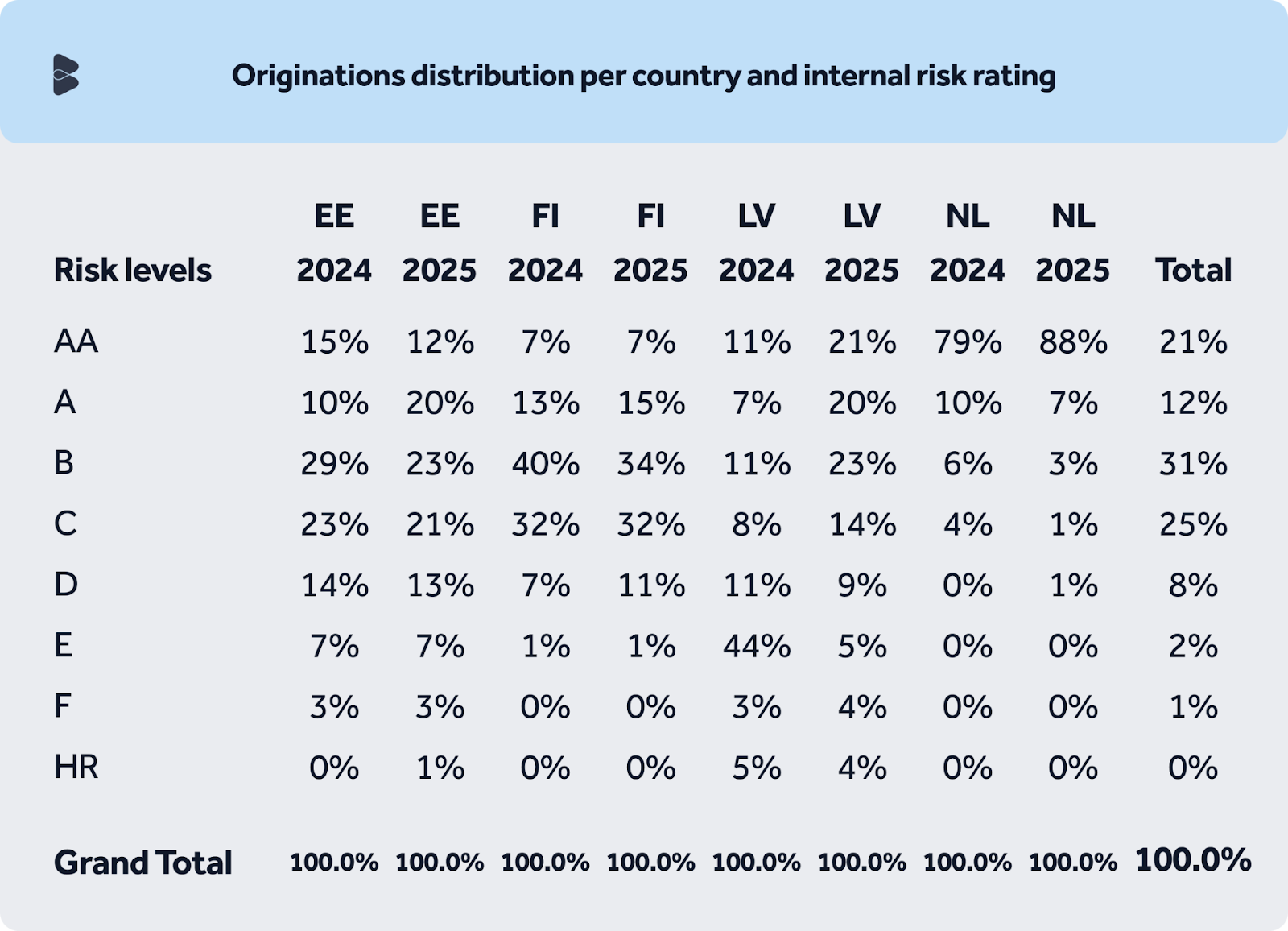 The majority of our originations fall within low-risk levels. We continue to take a prudent approach to risk management by increasing the proportion of loans in the AA-C risk categories across all markets.