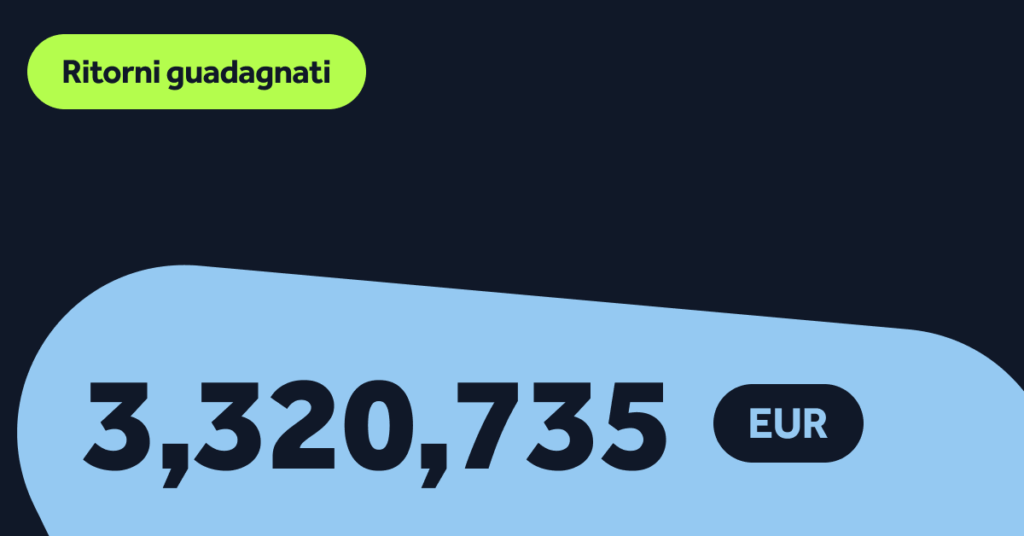 Nel corso della nostra storia di 17 anni, i nostri investitori hanno guadagnato oltre 156 milioni €! Unisciti ora alla Community di Go & Grow per farne parte 🤝